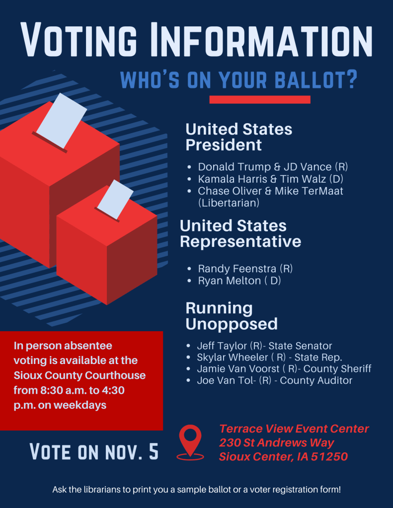 In preparation for the November 5 election, the Sioux Center Public Library wants to help our community become informed voters.