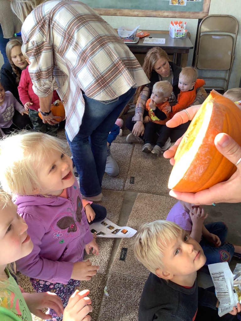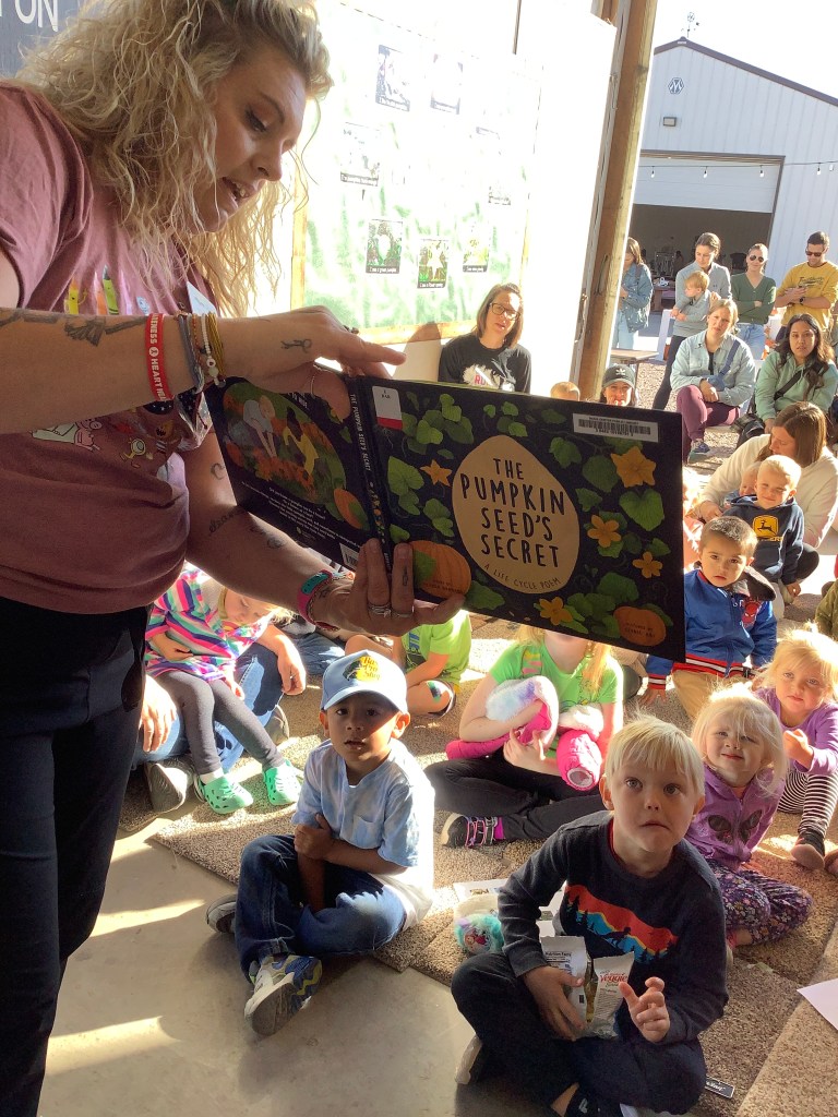 My favorite event this fall was the “field trip” Storytime at Fields of Fun! We read a book called “A Pumpkin Seeds Secret” by Hannah Barnaby. It was fun watching the kids doing a pumpkin scavenger hunt and picking their own pumpkin from the field. There was a large crowd, as always, at this Story Time and we had a beautiful day for exploring the playground and pumpkin patch!