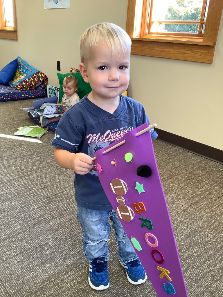 Some of my favorite moments this fall were from our football themed Storytime where we read “Fall Ball” by Peter McCarty, and made pennant flags. The kids were really into the theme and were great listeners during the stories. They also loved decorating the flags with their names and favorite team colors. Another fun Storytime we hosted was pie themed, which was fun! We even gave out little pies to the kids as they were leaving.