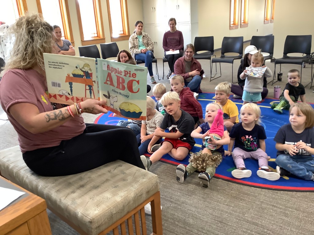 Each season, the Children’s Programmers at the Sioux Center Public Library use a different theme to engage preschool aged children in learning activities and enjoyment of a wide array of quality children’s literature. During the fall of 2024, we have focused on the season of fall under the larger umbrella of “A Season in Stories.” We have had a lot of fun exploring fall themes such as football, squirrels, apples and pumpkins. As we look back on the past few months of stories, the Children’s Programmers have some favorite books and memories to share from this season of Storytime.